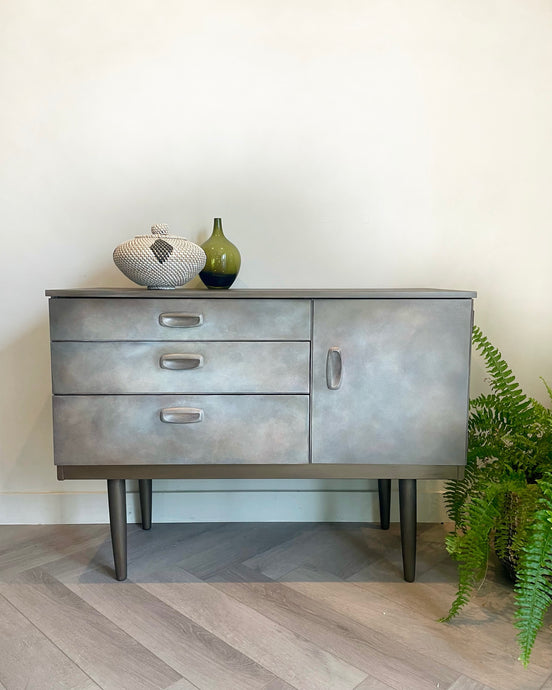 Mid Century Hand Painted Cabinet | Vintage Sideboard | Earthy Tones Bronze Finish | Retro Furniture
