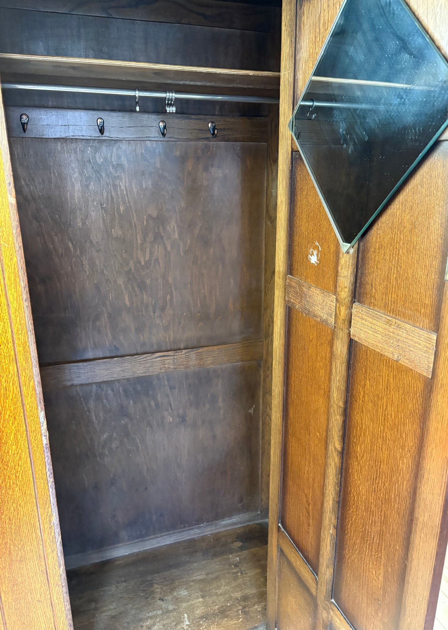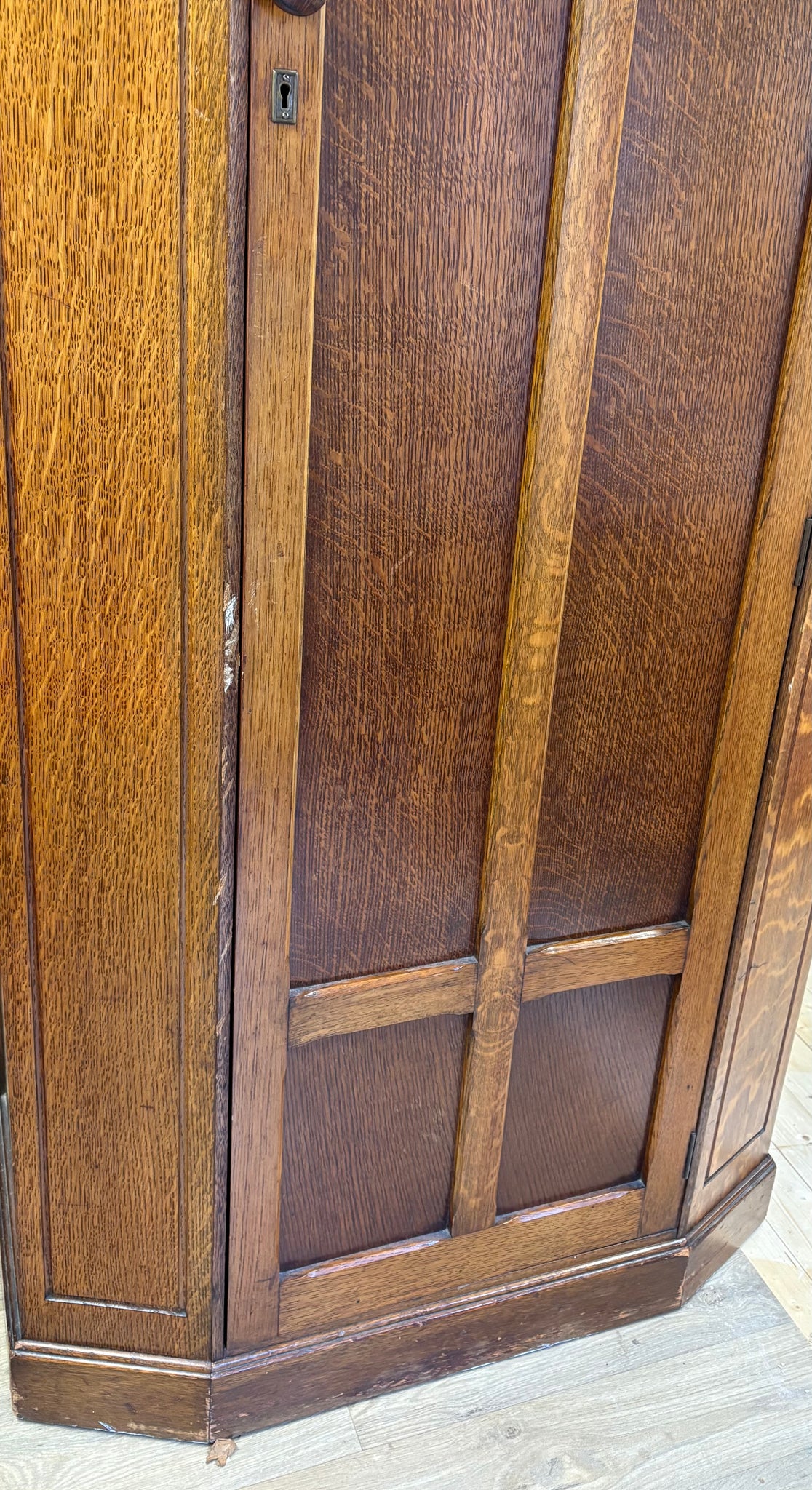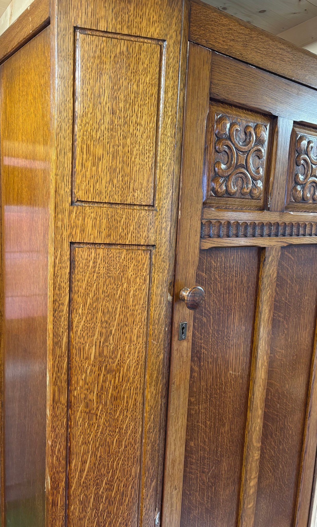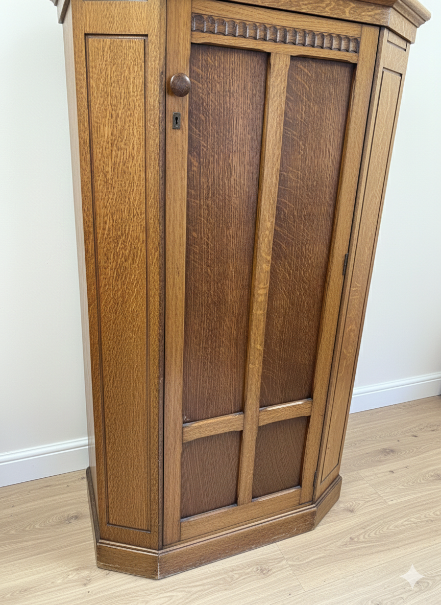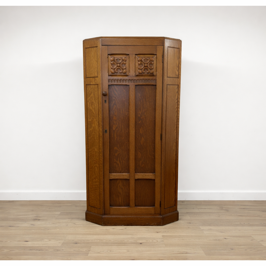 This beautiful arts and crafts oak wardrobe is available as a made-to-order custom painted piece, finished in the colour and decorative style of your choice.